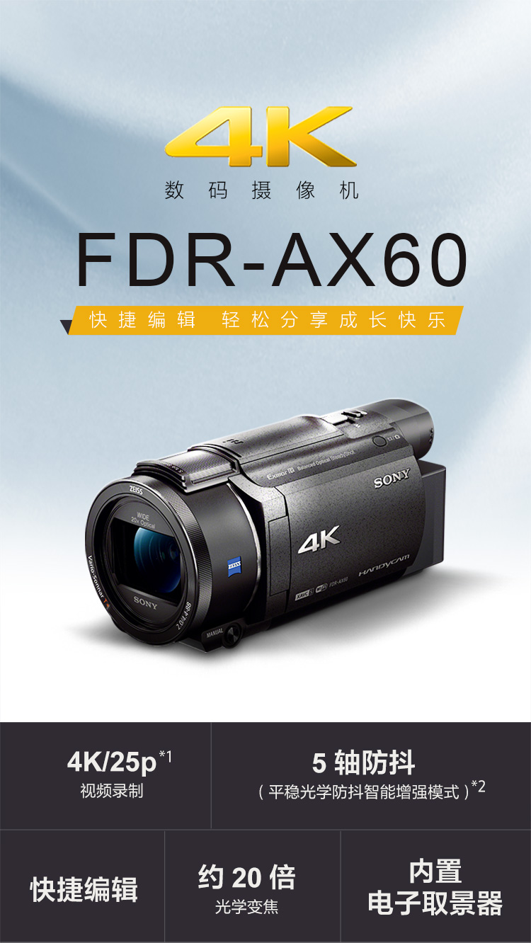 索尼(SONY)FDR-AX60 直播4K高清数码摄像机 家用DV摄影录像机 5轴防抖(含128G卡+备电+相机包+滤镜)